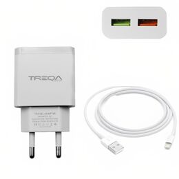 Φορτιστής Ταχείας Φόρτισης με 2 Θύρες USB 3.1A και Καλώδιο Lightning - Treqa