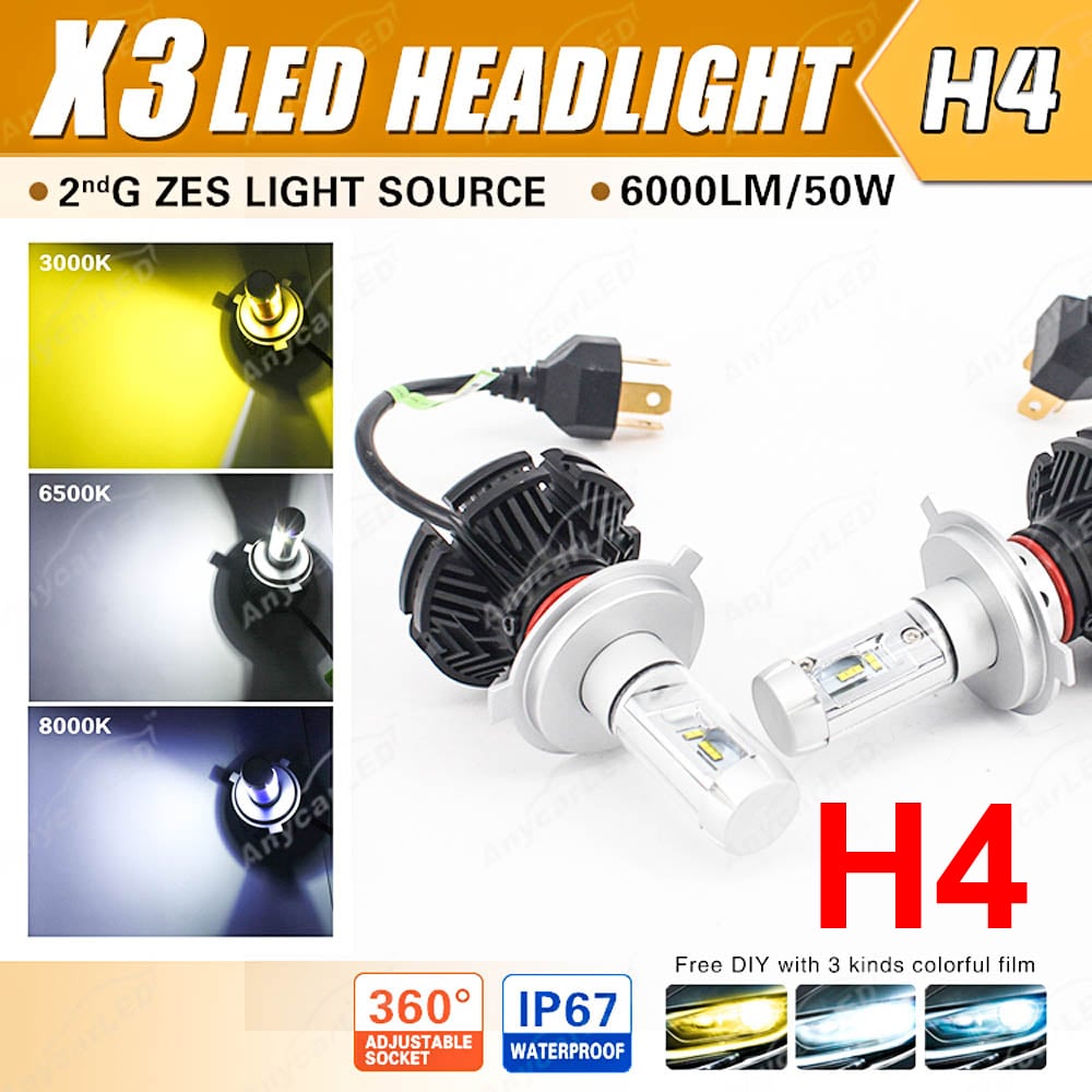 2 x Λάμπες (2x50w) CREE LED H4 Can Bus νέας γενιάς με COB LED. Compact σχεδίαση χωρίς ballast για ακόμα απλούστερη εγκατάσταση.