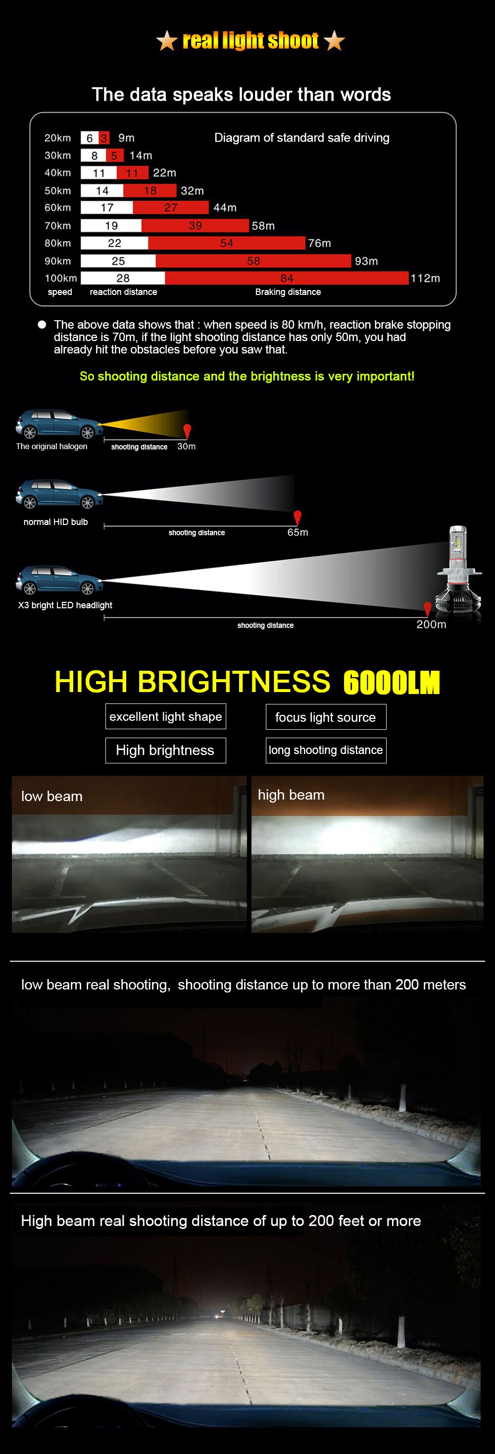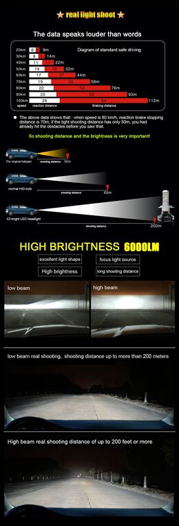 - Lumen: 2 x 6000LM