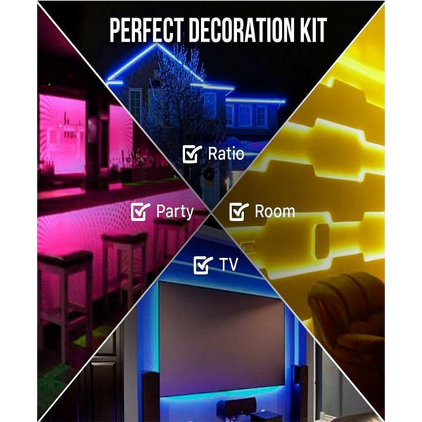 Φωτορυθμικό - διακοσμητικός φωτισμός για το σπίτι με τηλεχειριστήριο και ενσωματωμένο μικρόφωνο για να αλλάζουν χρώμα με τον ρυθμό της μουσικής ή κατ' επιθυμία! Δημιουργήστε ξεχωριστή ατμόσφαιρα και εκπλήξτε τους καλεσμένους σας με αυτή την τηλεχειριζόμενη ταινία LED με RGB εναλλασσόμενο χρωματιστό φωτισμό!