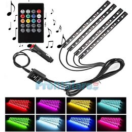 Φωτορυθμικό - διακοσμητικός φωτισμός για το σαλόνι του αυτοκινήτου! 4 x Ταινίες LED με τηλεχειριστήριο και ενσωματωμένο μικρόφωνο για να αλλάζουν χρώμα με τον ρυθμό της μουσικής ή κατ' επιθυμία!