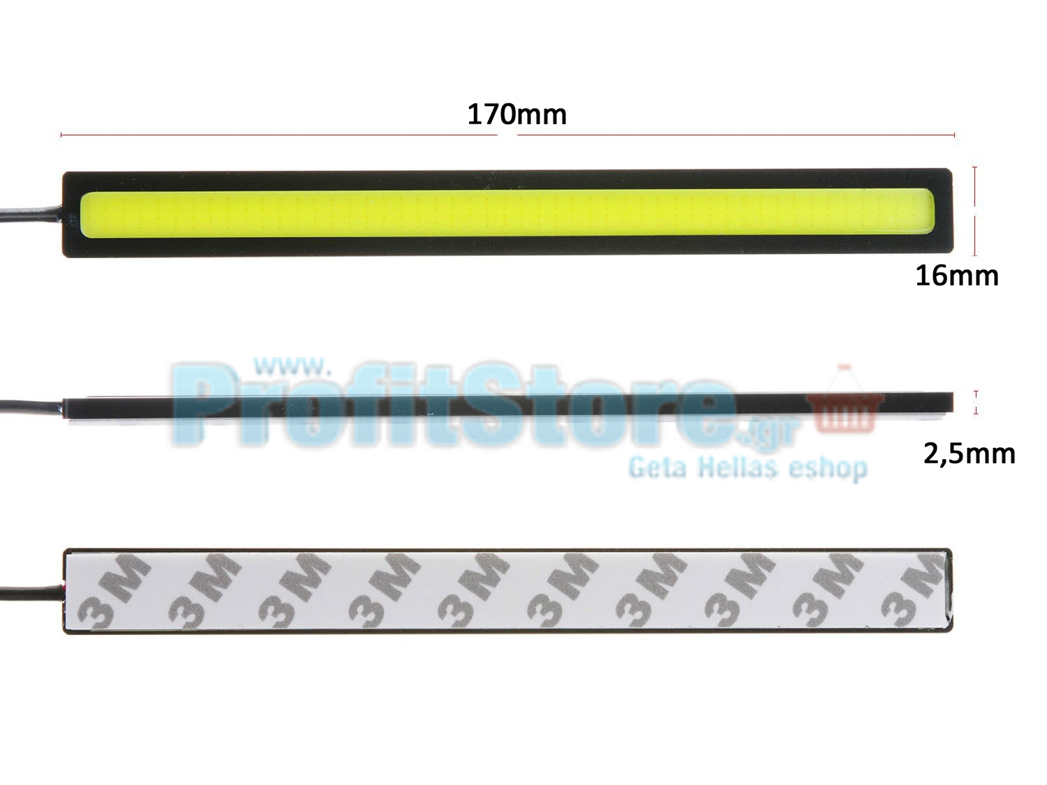 Φώτα Ημέρας Αυτοκινήτου Ultra Slim High Power 12W COB LED Daytime Running Lights - Σετ 2 τεμαχίων 170mm