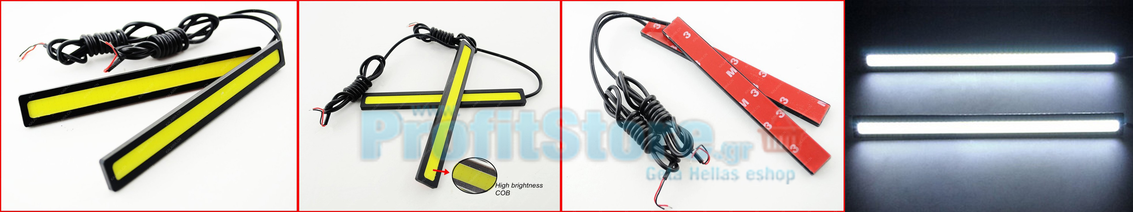 Πρακτικά και αισθητικά φώτα ημέρας αυτοκινήτου τεχνολογίας COB LED ( Chips On Board ) ! Tα LED είναι τοποθετημένα τόσο κοντά που δεν διακρίνονται και δίνουν την αίσθηση μιας φωτεινής επιφάνειας που φωτοβολεί με απίστευτη φωτεινότητα !