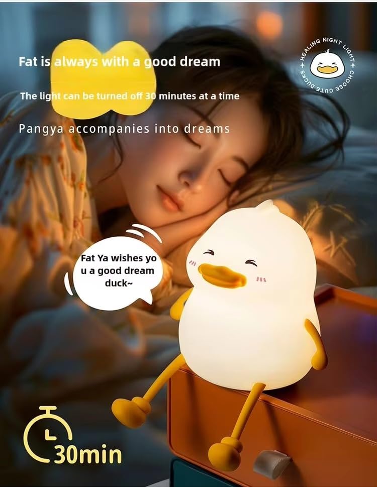 Το φωτιστικό νυκτός σε σχήμα πάπιας συνδυάζει χαριτωμένο design με πρακτικότητα, προσφέροντας μια ζεστή και ασφαλή ατμόσφαιρα στο παιδικό δωμάτιο.