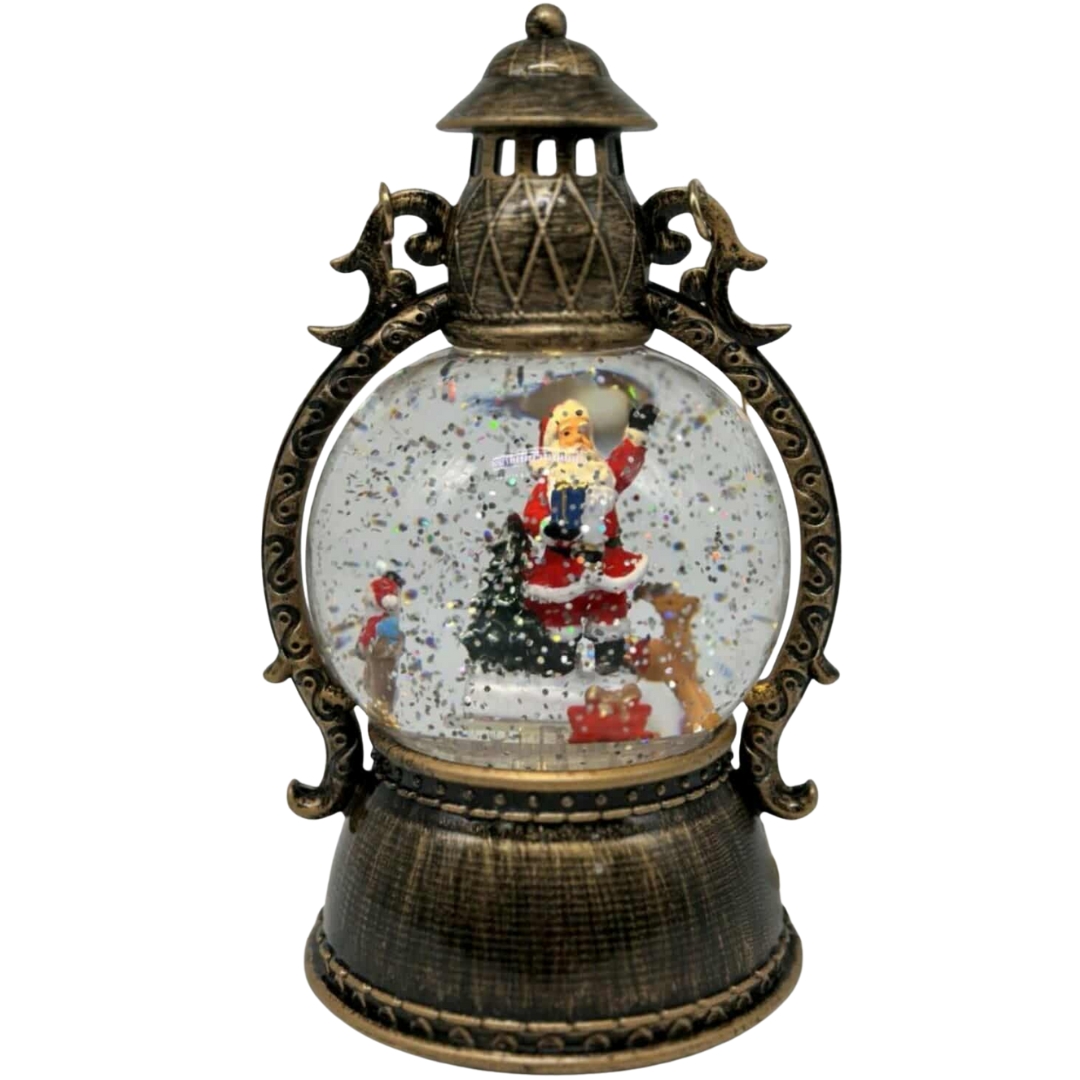 Φωτιζόμενο Χριστουγεννιάτικο Φανάρι Χιονόμπαλα και Άγιο Βασίλη 21 cm