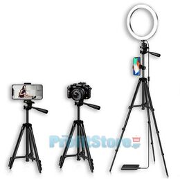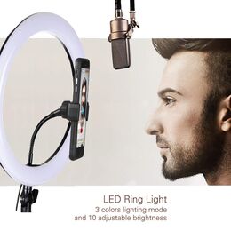 Φωτογραφικό Φωτιστικό Δαχτυλίδι LED 26cm με Πολυλειτουργικό Τρίποδο, 3 Χρώματα Φωτισμού, Dimmer, Βάση Στήριξης Κάμερας & Κινητού - Ring Light Lamp