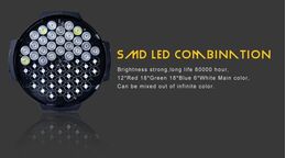 - 54x0.5w LED (12 Red, 18 Green, 18 Blue, 6 White.