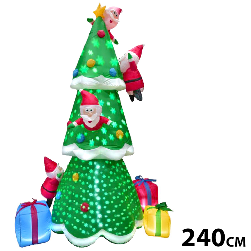 Αδιάβροχο Φουσκωτό Δέντρο Γίγας 240cm με Προτζέκτορα Αστεριών, Φωτισμό LED, Δώρα & Μικρούς Άι Βασίληδες - Χριστουγεννιάτικο Διακοσμητικό
