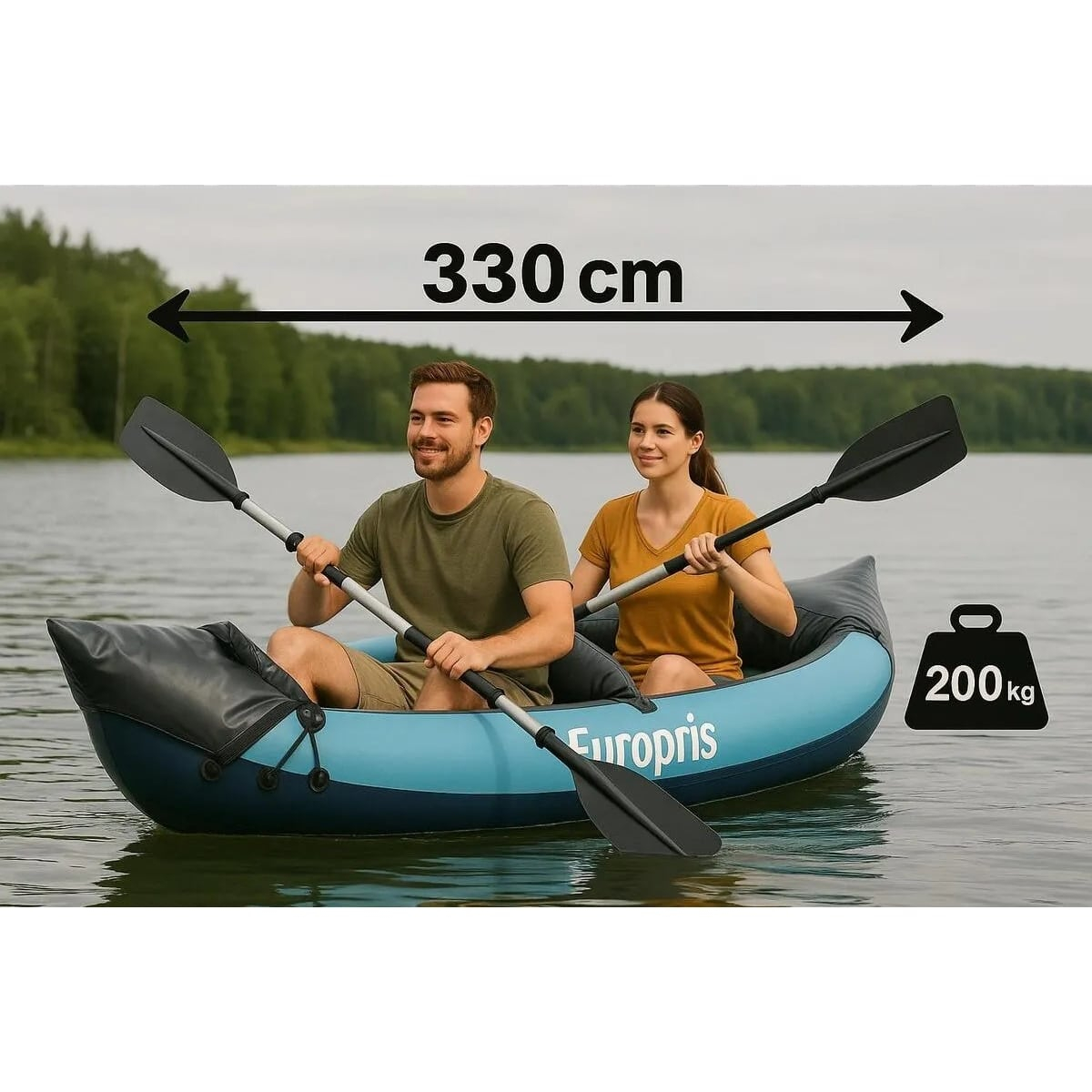 - 1 φουσκωτό καγιάκ Europris (2 θέσεων)