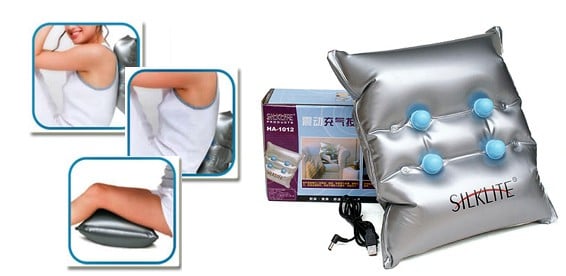 Στην συσκευασία περιλαμβάνονται ένα φουσκωτό μαξιλάρι μασάζ και μια αντλία αέρα.