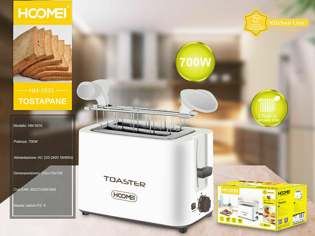 Φρυγανιέρα 2 Θέσεων 700W με 7 Επίπεδα Ψησίματος Λευκή Hoomei HM-5935