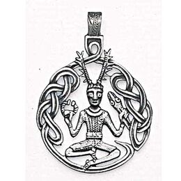 Ο Cernunnos είναι ο αρσενικός θεός των Κελτών με κέρατα και συνδέεται με τα αρσενικά ζώα που έχουν κέρατα, ειδικά με το αρσενικό ελάφι και το κριάρι. Στο φυλαχτό αυτό ο Cernunnos κρατεί στα χέρια του κέρατα και φίδι, σύμβολα δύναμης και γονιμότητας. Λέγεται ότι ο κάτοχος αυτού του φυλαχτού ενισχύεται με δύναμη, σεξουαλικότητα και γονιμότητα.Μέγεθος (εκατ.): 3,4x 4,6