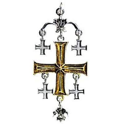 Το όνομα των Ναϊτών Ιπποτών προήλθε από τον αρχαίο Ναό του Σολομώντα στην Ιερουσαλήμ, ο οποίος έγινε και έδρα τους τον 12ο αιώνα. Οι πέντε σταυροί αντιπροσωπεύουν τη Γη, τον Αέρα, τη Φωτιά, το Νερό και το Πνεύμα. Ο κάτοχος αυτού του σταυρού είναι πραγματικός κατακτητής Κοσμικού και Πνευματικού Πλούτου.Μέγεθος: 25x50mm