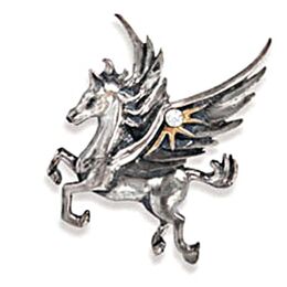 Το μυθικό άλογο, φτερωτό και γοργοπόδαρο, χαρίζει πρωτοτυπία και φαντασία σε εκείνους που το φορούν. Εδώ, σε πλήρη πτήση, με ένα αστέρι να καθρεφτίζεται στο φτερό του, ο Πήγασος προαναγγέλλει έμπνευση από τις Μούσες.