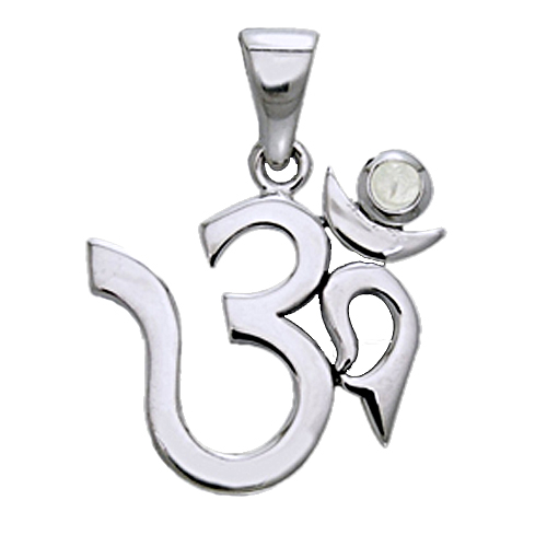 Φυλαχτό Σύμβολο Om με Φεγγαρόπετρα για Συμπαντική Βοήθεια 925° TPD3286