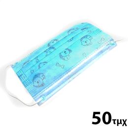 Γαλάζια Παιδική Μάσκα 3 Στρωμάτων Προστασίας μιας Χρήσης με Σχέδια - 50 τμχ