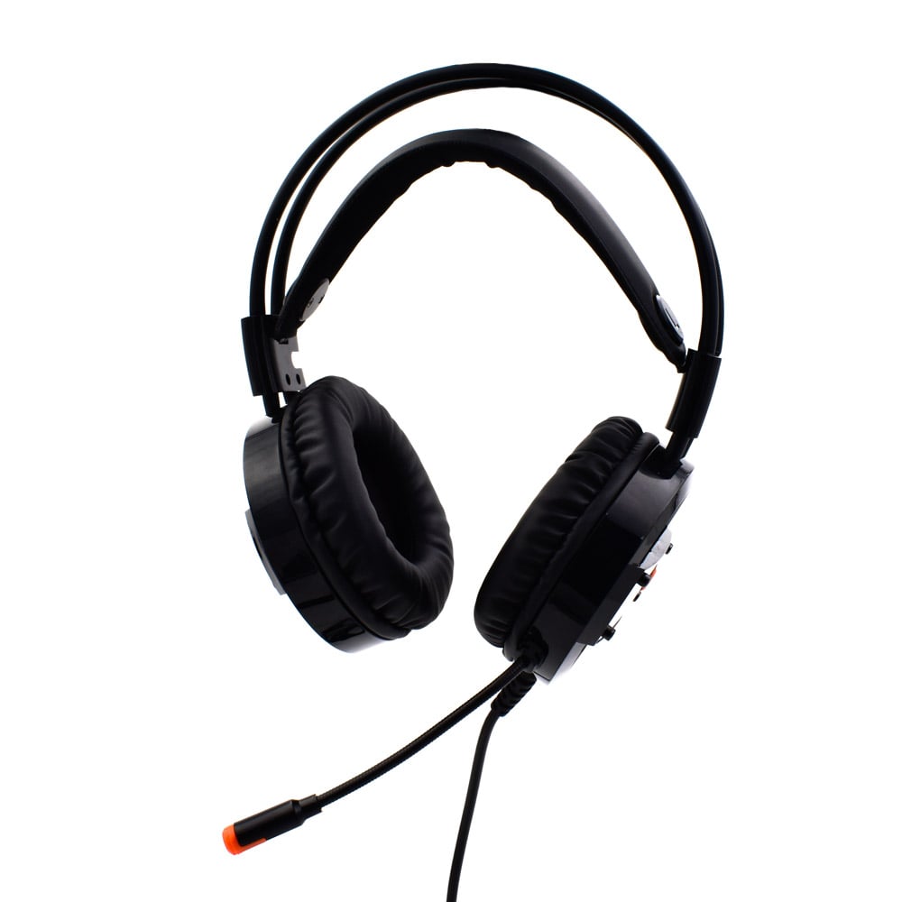 Over Ear Gaming headset με μέγεθος ακουστικών 50mm, διακοσμητικό φωτισμό με πορτοκαλί LED και Μικρόφωνο για PC, laptop, PS4 και κινητές συσκευές με συνδέσεις 3.5mm jack, USB και αντάπτορα διπλού 3.5mm jack.