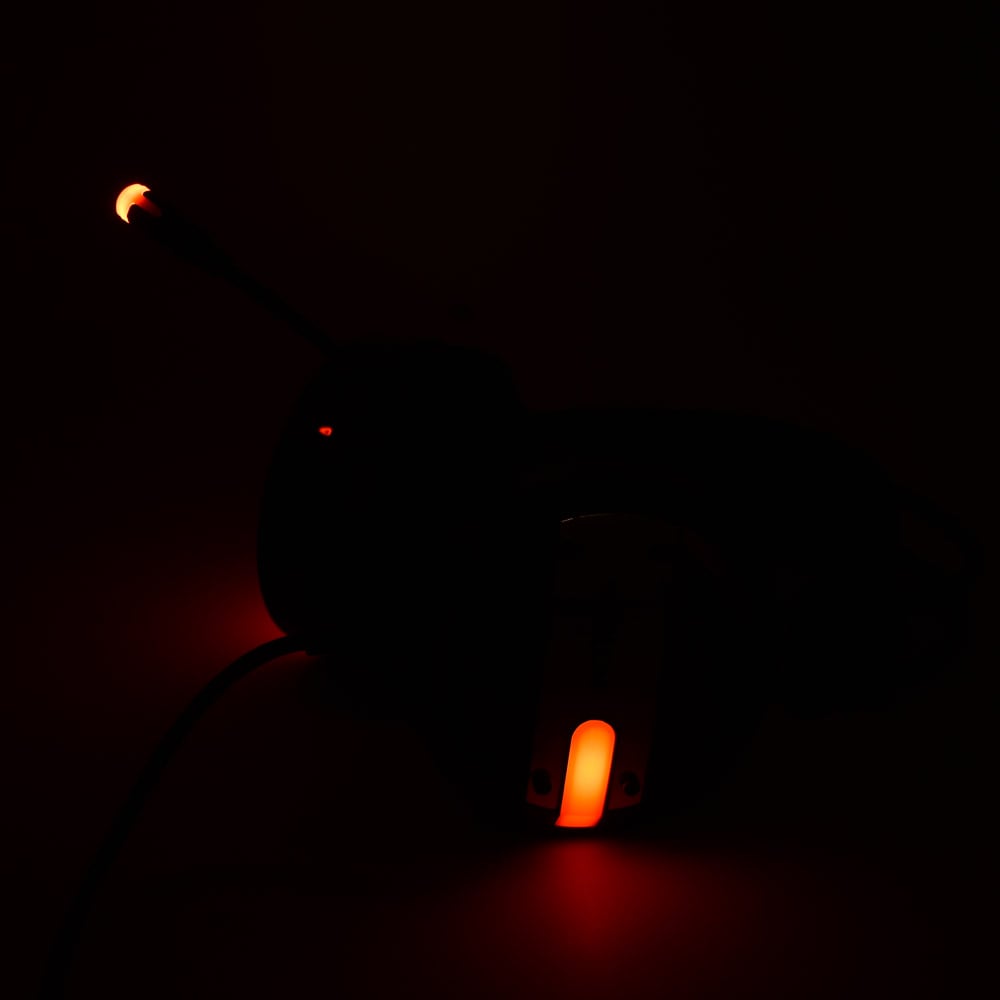 Η ατμόσφαιρα του παιχνιδιού σίγουρα θα αλλάξει από το εφέ του φωτισμού.Το πλαίσιο των ακουστικών διαθέτει ενσωματωμένα πορτοκαλί LED φώτα .