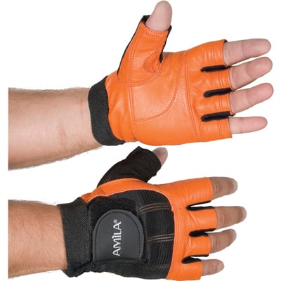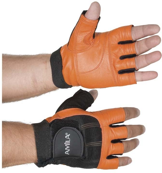 Δερμάτινα Γάντια Γυμναστικής Amila Nubuk Μαύρο , Πορτοκαλί M