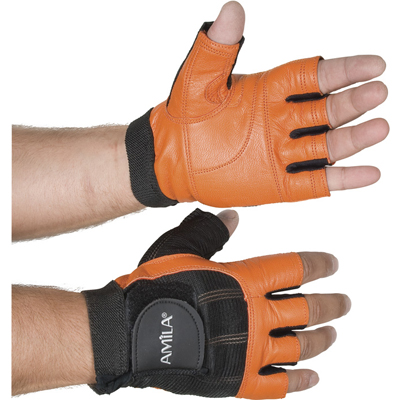 Δερμάτινα Γάντια Γυμναστικής Amila Nubuk Μαύρο , Πορτοκαλί M
