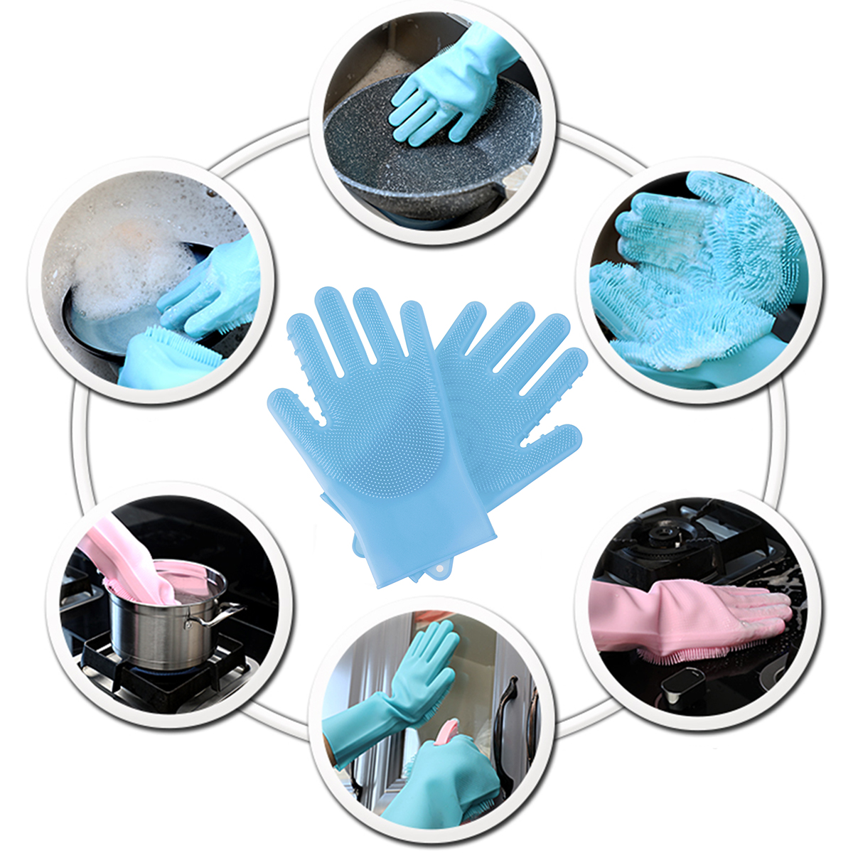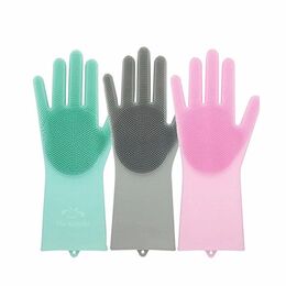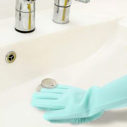 Γάντια σιλικόνης με 100άδες απαλά τριχίδια τριψίματος τα οποία καθαρίζουν αποτελεσματικά λαδιές, επίμονους λεκέδες και βρομιές σαν ένα σφουγγάρι! Τέλος τα συμβατικά σφουγγάρια, καθώς με αυτά τα γάντια τα έχετε όλα ενσωματωμένα σε 1 !