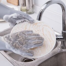 Γάντια σιλικόνης με 100άδες απαλά τριχίδια τριψίματος τα οποία καθαρίζουν αποτελεσματικά λαδιές, επίμονους λεκέδες και βρομιές σαν ένα σφουγγάρι! Τέλος τα συμβατικά σφουγγάρια, καθώς με αυτά τα γάντια τα έχετε όλα ενσωματωμένα σε 1 !