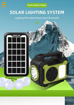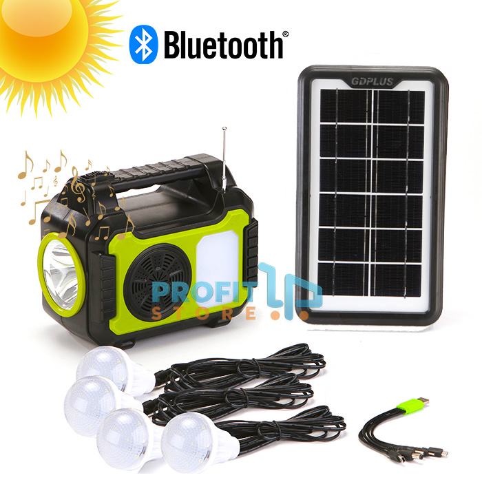 Ηλιακό Σύστημα Φωτισμού με 4 Λάμπες, Bluetooth Ηχείο, Φακός & Φωτιστικό LED, Φορτιστή Powerbank USB & Ραδιόφωνο FM GDPLUS