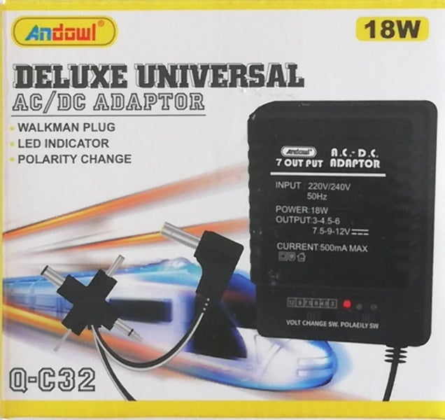 Αυτός ο προσαρμογέας μετατρέπει το ρεύμα του σπιτιού ώστε να επιτρέπει τη λειτουργία μονάδων με μπαταρία που απαιτούν οποιαδήποτε από τις ακόλουθες τάσεις: 3, 4,5, 6, 7,5, 9, 12V DC με μέγιστο φορτίο ρεύματος 500mA.