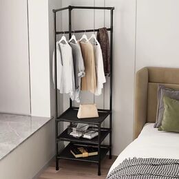 Γωνιακή Μεταλλική Κρεμάστρα - Ραφιέρα & Παπουτσοθήκη Δαπέδου με 3 Ράφια 180x45x30cm - Corner Storage Rack Μαύρο