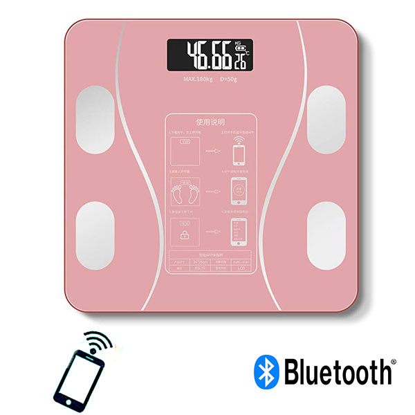 Γυάλινη Ψηφιακή Ζυγαριά Bluetooth για Μέτρηση Βάρους, Λιπομέτρηση & Δείκτη Μάζας Σώματος Έως 180kg - Ροζ
