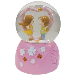 Γυάλινη Χιονόμπαλα με Καρδιά και Δύο Ανθρωπάκια Ροζ 8x12cm