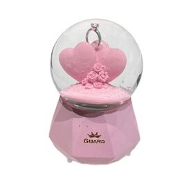 Γυάλινη Xιονόμπαλα με Καρδιές Δαχτυλίδι & Μουσική 9x6cm -Ροζ