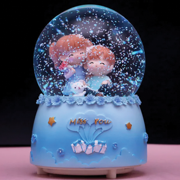Γυάλινη Χιονόμπαλα Miss You με Δύο Ανθρωπάκια Μπλε 8x12cm