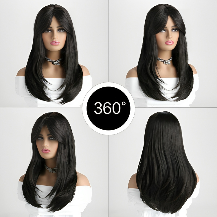 Αναβαθμίστε το στυλ σας με την γυναικεία περούκα σε μελαχρινό χρώμα με μακρύ μήκος, μύτες και αφέλειες, το τέλειο αξεσουάρ για να μεταμορφώσετε την εμφάνισή σας χωρίς κόπο!