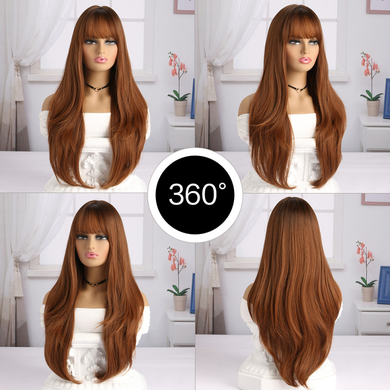 Αναβαθμίστε το στυλ σας με την Γυναικεία Συνθετική Περούκα με Μακρύ μήκος και Αφέλειες, το τέλειο αξεσουάρ για να μεταμορφώσετε την εμφάνισή σας χωρίς κόπο!