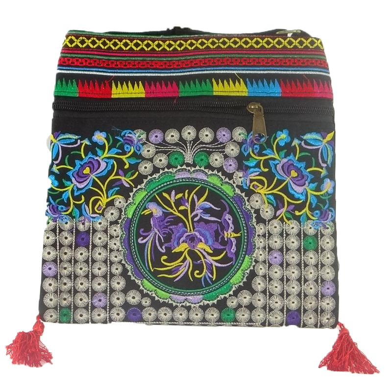 Γυναικεία Τσάντα με Κεντητό Σχέδιο με Φουντάκια - 85014 OEM