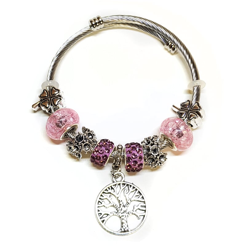 Γυναικείο Βραχιόλι με Διάφορα Γούρια - Tree Pink
