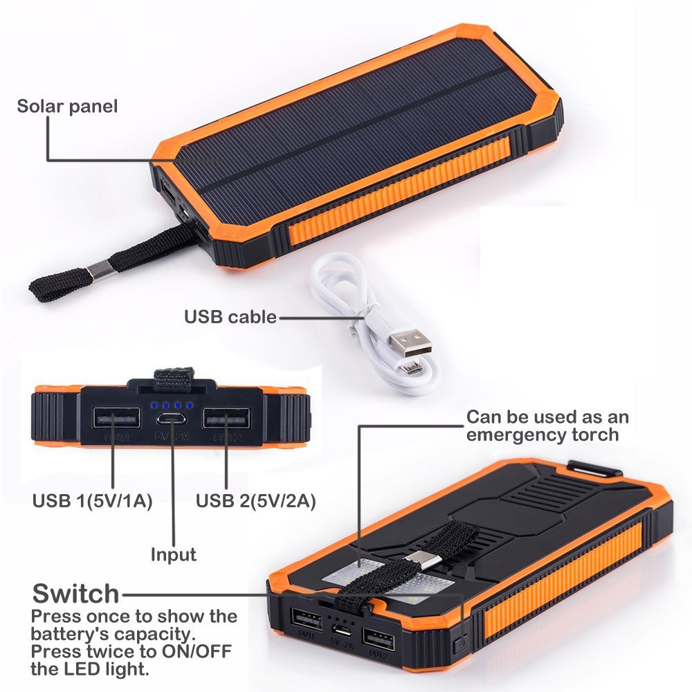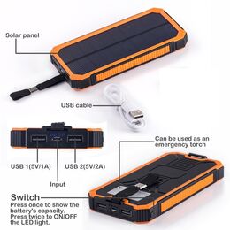 Μπορείτε να το έχετε μαζί σας στο αυτοκίνητο, στην εξοχή, στο camping ή όπου αλλού θέλετε και όταν η αγαπημένη σας συσκευή (smartphone, iPhone, ANDROID, nokia, samsung, κάμερα, mp3 κτλ) στερεύει από ενέργεια, απλά την συνδέεται στο Ηλιακό Power Bank και ξαναγεμίζει με ενέργεια. Φορτίζει και Tablet, iPad και άλλες μεγάλες συσκευές λόγω της ισχυρής εξόδου 2Α ενώ μπορεί να συνδεθεί και να φορτίζει ταυτόχρονα 2 συσκευές.