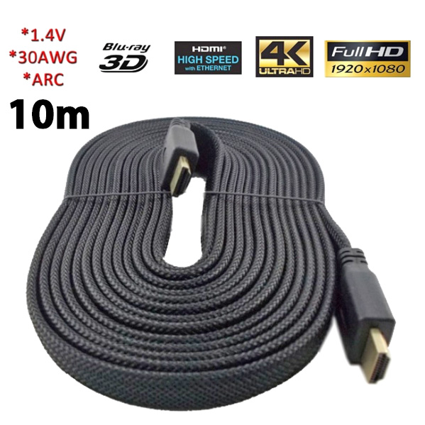 High Speed HDMI 1.4 3D καλώδιο με Ethernet - 10m Flat Heavy Duty 1080p Full HD Gold Plated