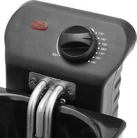Διαθέτει αποσπώμενο κάδο 1lt για να καθαρίζεται ευκολότερα και ρυθμιζόμενο θερμοστάτη για να μπορείτε να μαγειρέψετε φαγητά που απαιτούν διαφορετικές θερμοκρασίες ψησίματος.