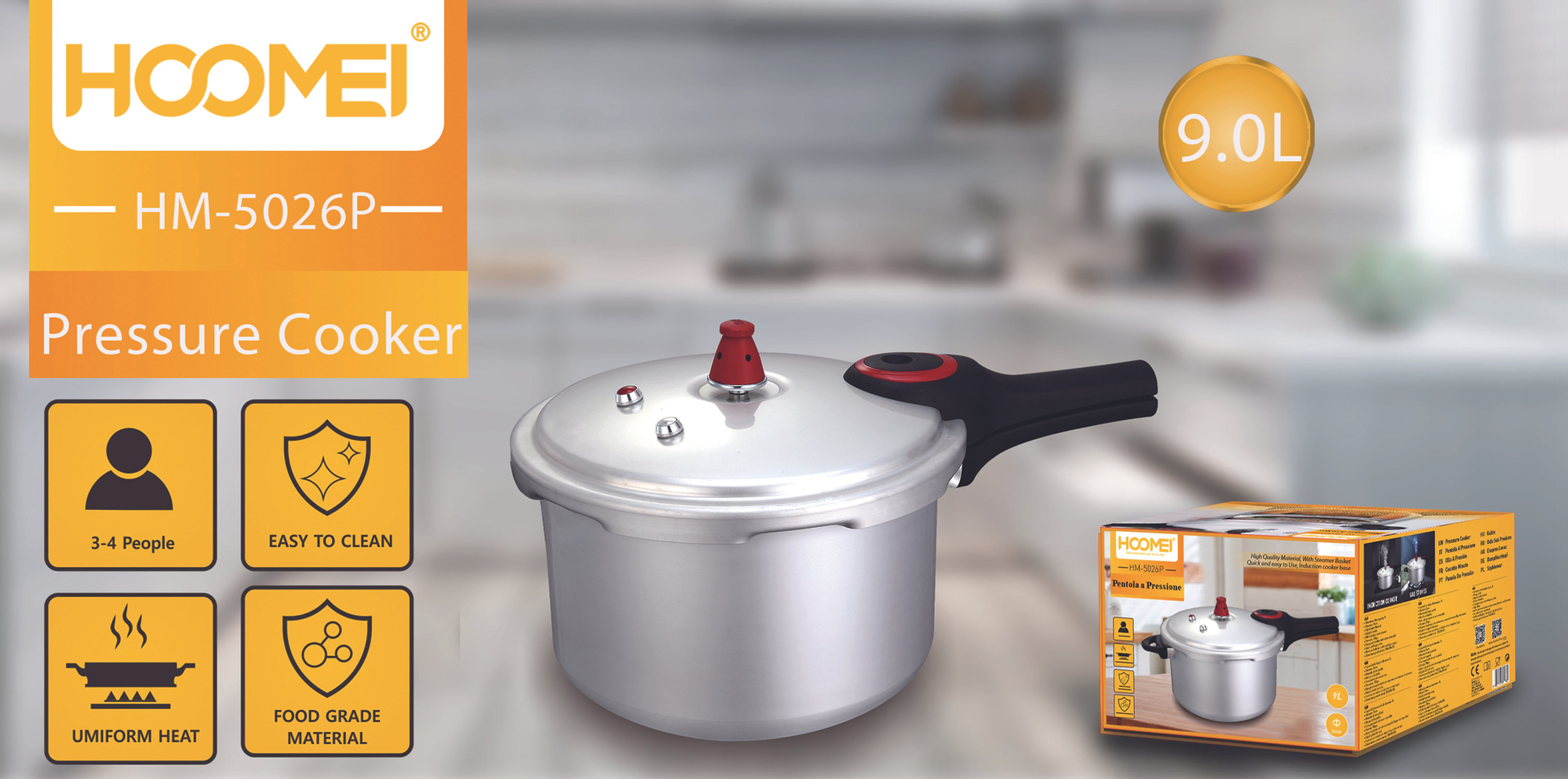 Hoomei Χύτρα Ταχύτητος 9L από Κράμα Αλουμινίου με Διάμετρο 26cm