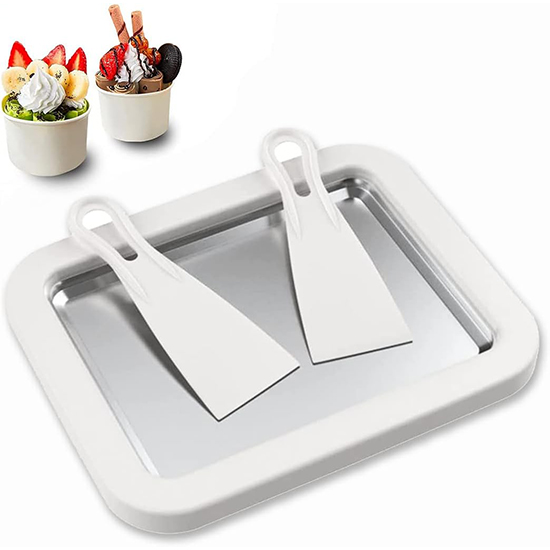 Ice Roll Maker - Παγωτομηχανή με 2 Σπάτουλες για Σπιτικό Ρολό Παγωτού & Παγωμένο Γιαούρτι - Instant Ice Cream Maker Λευκό