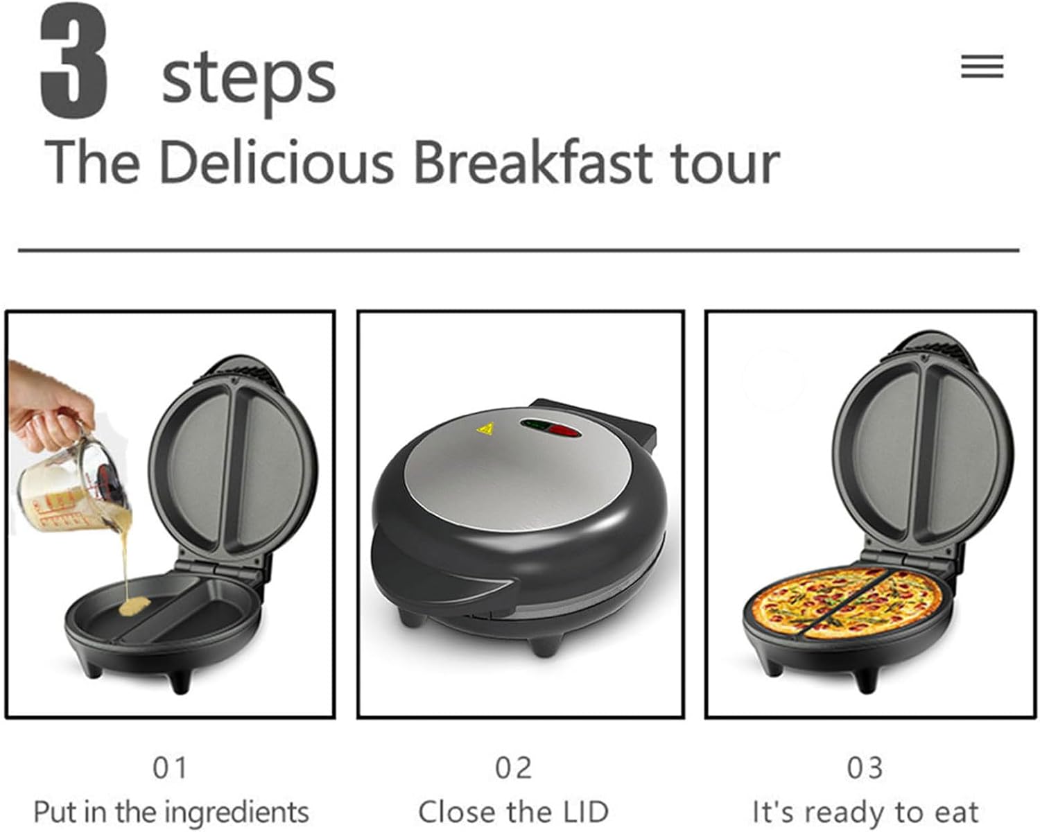 Απολαμβάνετε γρήγορη και εύκολη προετοιμασία πρωινού χάρη στην ισχυρή απόδοση 850W και τη διπλή επιφάνεια ψησίματος που επιτρέπει το ταυτόχρονο μαγείρεμα δύο ομελετών.