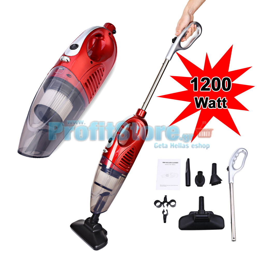 Φορητή ηλεκτρική σκούπα και σκουπάκι χειρός ρεύματος 1200W. Μικρό και ελαφρύ σαν τα σκουπάκια μπαταρίας αλλά με εξαιρετικά δυνατή ισχύ και αναρρόφηση. Μεγάλη ευκολία στη χρήση, στη μεταφορά και στην αποθήκευση. Περιλαμβάνεται κοντάρι προέκτασης με λαβή και κεφαλές - εξαρτήματα.