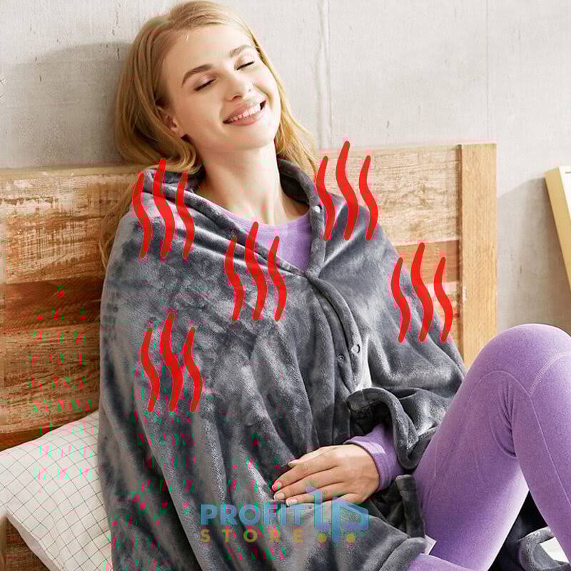 Ηλεκτρική USB Θερμαινόμενη Φλις Μαλακή Ζακέτα - Σάλι Διπλής Όψης με 7 Σημεία Θέρμανσης & 3 Επίπεδα Θερμότητας 155x72cm - Fleece Πόντσο