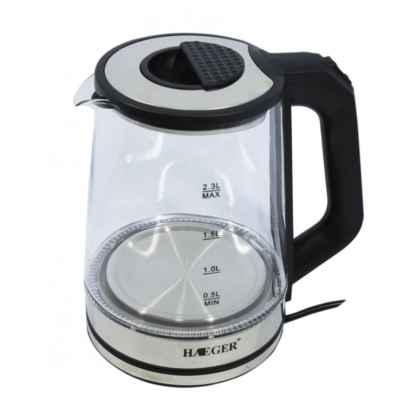Ο βραστήρας Haeger HG-7846 διαθέτει δυνατή ισχύ 2000W, έχει κανάτα από πυρίμαχο γυαλί χωρητικότητας 2.3 lt και δείκτη στάθμης νερού.