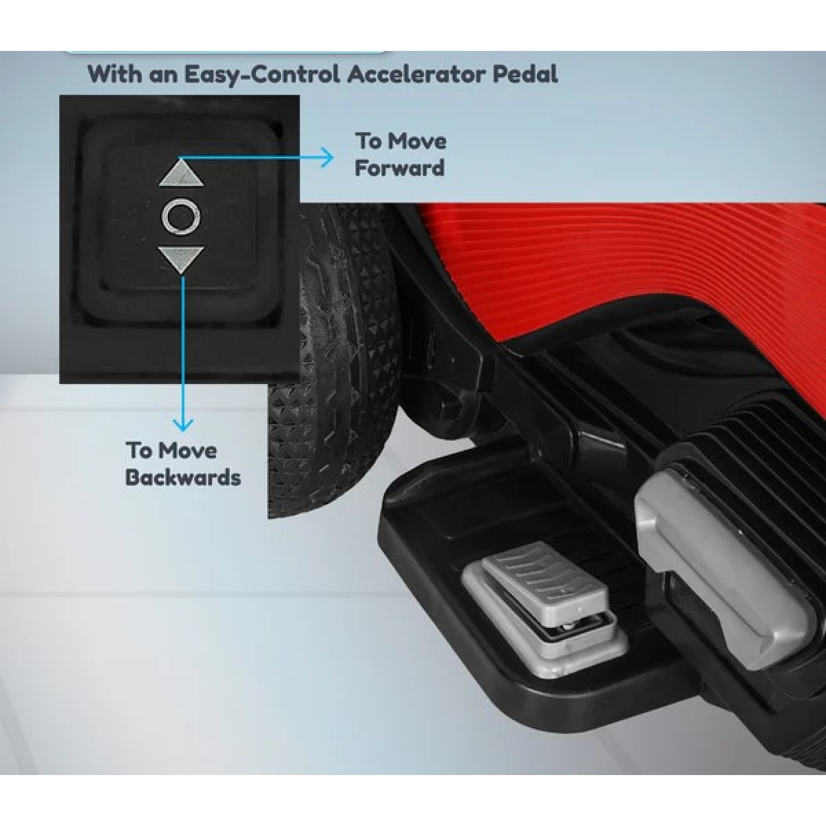 Εύκολη χρήση - Απλό σύστημα εκκίνησης και χειρισμού, προσαρμοσμένο στις δυνατότητες των παιδιών. Εξοπλισμένο με δύο κινητήρες 6V ισχύος έως 200W και 12000 σ.α.λ., παρέχει ομαλή επιτάχυνση, λειτουργία κίνησης εμπρός και πίσω και εύκολο χειρισμό μέσω επιταχυντή ποδιού