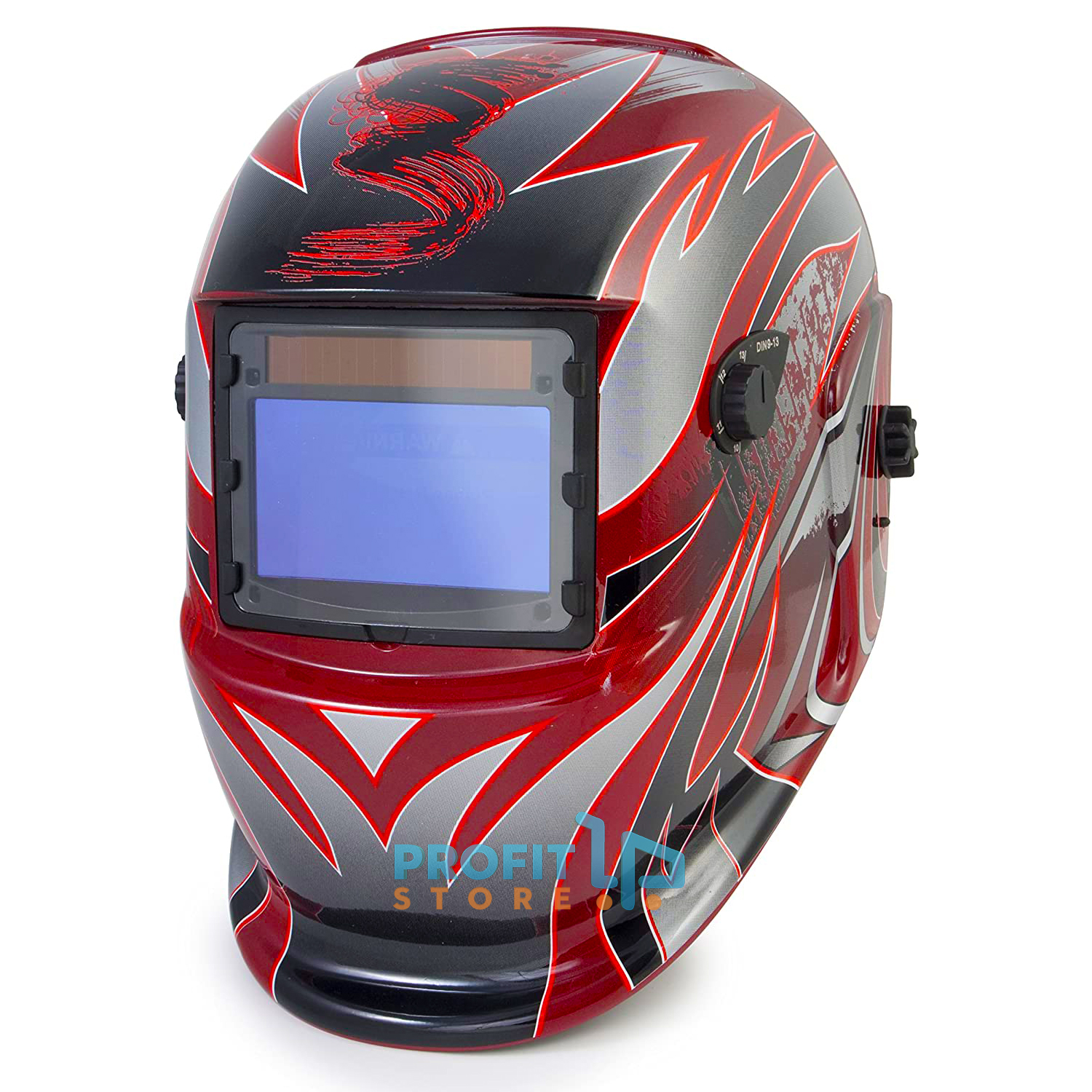 Ηλεκτρονική Μάσκα - Κράνος Ηλεκτροσυγκόλλησης Αυτόματης Σκίασης με Ηλιακό Πάνελ - Κόκκινο Μοτίβο Φωτιές
