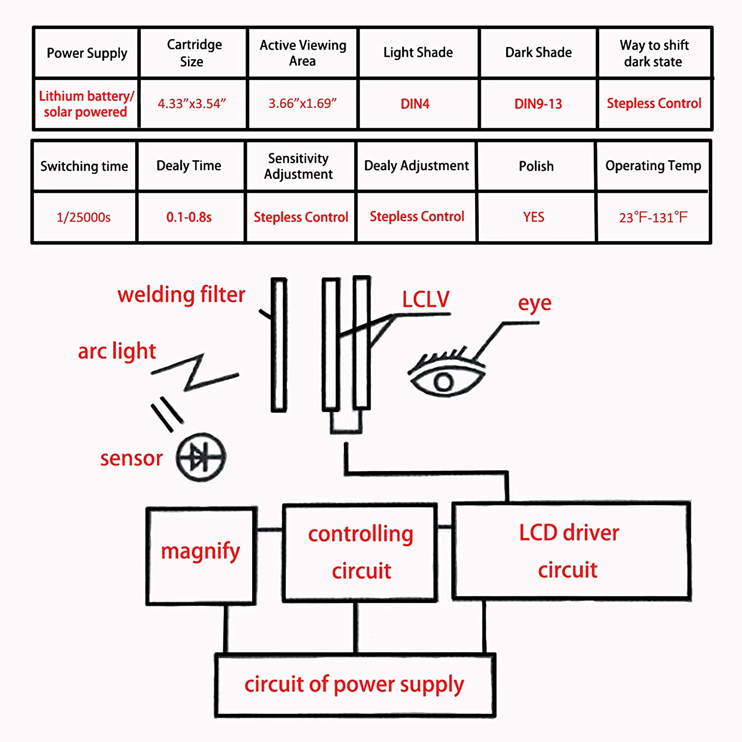 - Το αυτόματο φίλτρο σκίασης διαθέτει ροοστάτες για την καθυστέρηση (delay) και για την ευαισθησία φωτός (sensitivity) αλλά και ροοστάτη για το ποσοστό επισκίασης (έως και απόλυτο σκοτάδι)