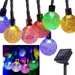 Ηλιακά Bubble Λαμπάκια 4.2m Χριστουγεννιάτικα Πολύχρωμου RGB Φωτισμού με 8 Προγράμματα - Φωτάκια 30 LED Εξωτερικού Χώρου με Φωτοβολταϊκό Πάνελ